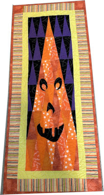 The sample is made with strips of Christmas fabrics. So if you have strips laying around here's a great way to use them up. The recommended rulers are useful so you may want to get them. What I like is the way the quilt looks like it has movement in it. Hope to see you in class so we can build some trees together.