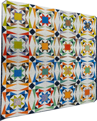 Beaded Lace is a beautiful Studio 180 quilt designed by Sarah Furrer. By combining Corner Beam units with Uneven Chain units, you are able to create a jeweled, beaded effect. The accent fabrics add rich color contrasts to the multi-color mediums. This is a great project to use some of your fat quarters for the lap and queen size quilts. Make it scrappy, "planned scrappy" or choose coordinated fat quarters. All of the options create a dazzling effect. It can be made in 3 sizes, Lap, Queen, and King. All sizes are made with the same block construction, only the block size is different.