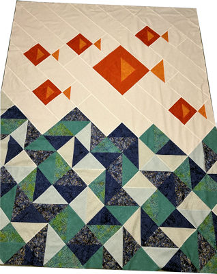 "Here fishy fishy". Living at the beach I'm drawn to beachy quilts. This is a fun one to make. We will make multiple half square triangles at a time. We learn how to square them up. We will spend the first day making our components and day 2 putting our blocks together. Come have a good time swimming with us in this fun class