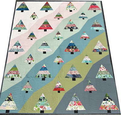 Trixi' s tree farm is so much fun as we play with half rectangles to create the curved look of hills. The trees themselves can be made either scrappy or one fabric.